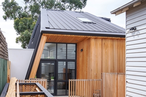 Taking reference from surrounding context, the pitched roof form reduced the visual bulk and overshadowing to adjacent dwellings, as well as integrating neighbouring characters into the design.